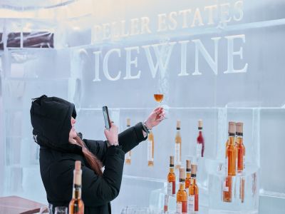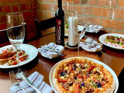 After a few more tastings, Kendall checks her pass’ map view for somewhere they can eat. Tinte Cellars, 0.2 miles away, is the perfect spot.