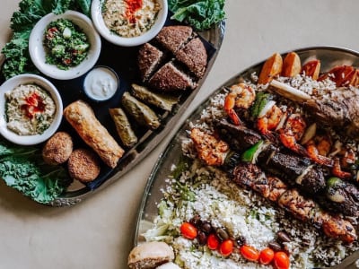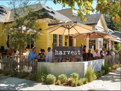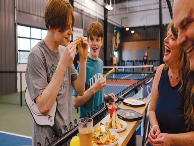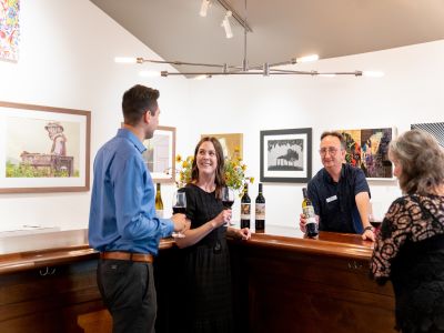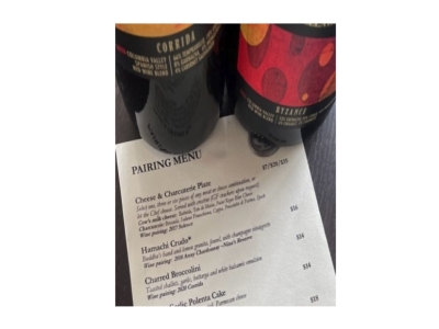 After a few more tastings, Kendall checks her pass’ map view for somewhere they can eat. Tinte Cellars, 0.2 miles away, is the perfect spot.