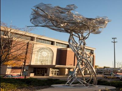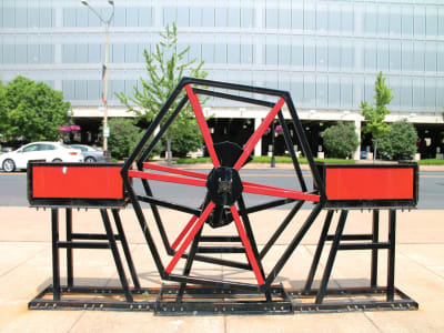 Sarah receives an email from her professor advocating for the value of public art. The email includes a pass easily accessible on her phone. Sarah sets out on her bike to view the art.